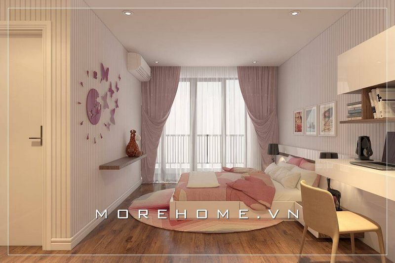 Nội thất trong phòng ngủ của con gái tại chung cư hiện đại được thiết kế tối giản nhưng vẫn đảm bảo đầy đủ các tiện nghi cần thiết cho con gái.