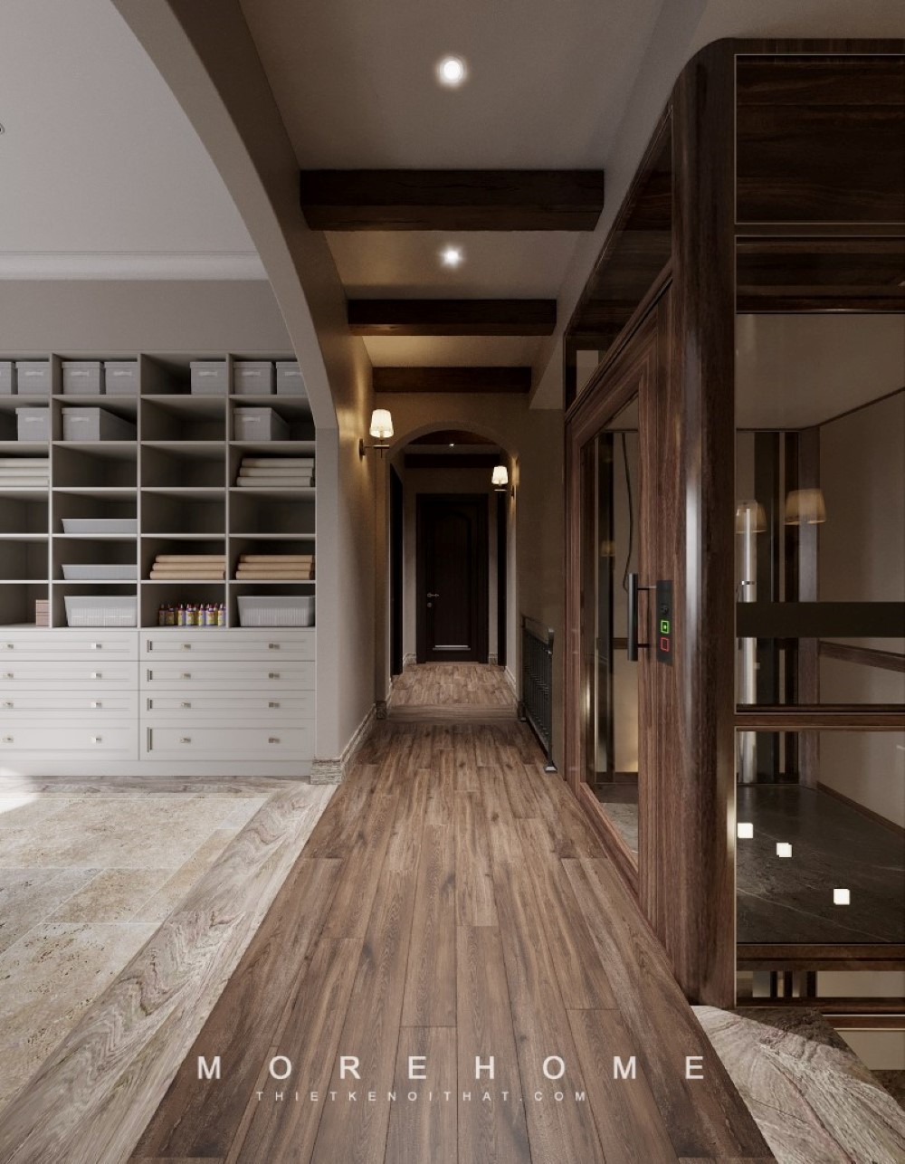 Không gian được thể hiện sự sang trọng và thẩm mỹ cao bởi sàn gỗ mới lạ với vẻ đẹp.